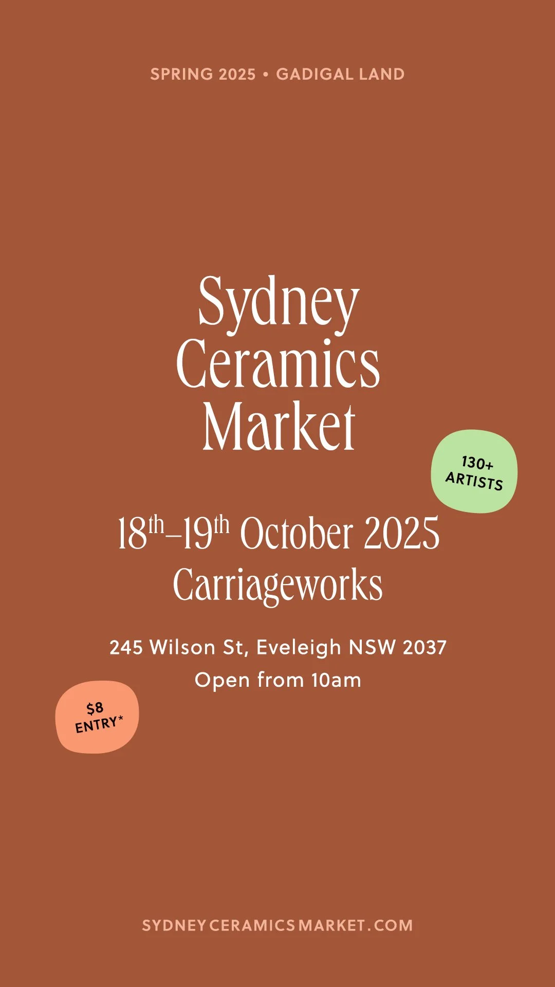 I will be returning to this years Sydney Ceramics Market! Head over to the website to buy your tickets early. Can’t wait to see you there!